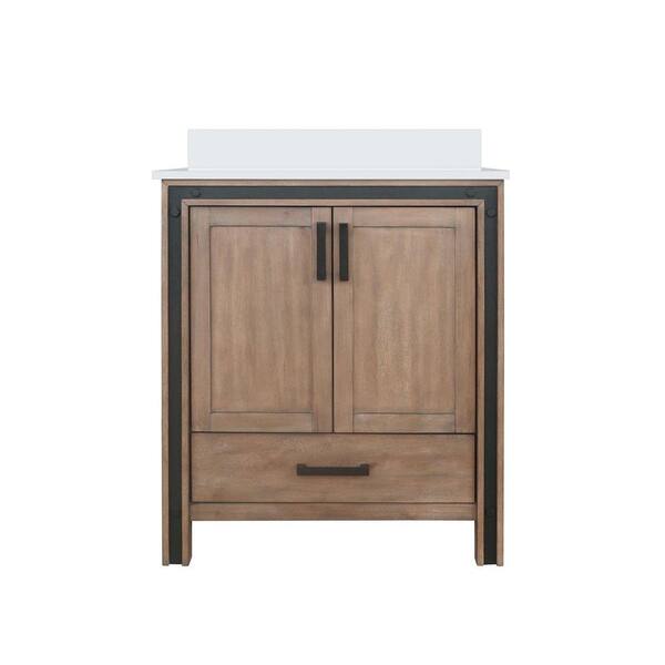 Ziva 30 in W x 22 in D Rustic Barnwood Bath Vanity and White Quartz Top