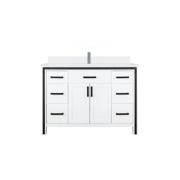 Ziva 48 in W x 22 in D White Bath Vanity, White Quartz Top and Faucet Set