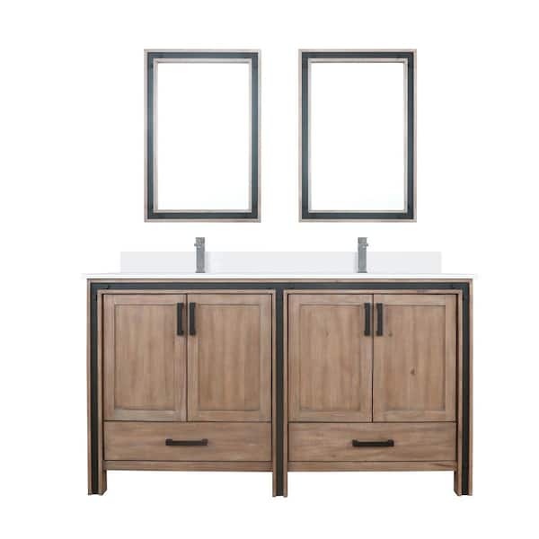 Ziva 60 in W x 22 in D Rustic Barnwood Double Bath Vanity, Cultured Marble Top, Faucet Set and 22 in Mirrors