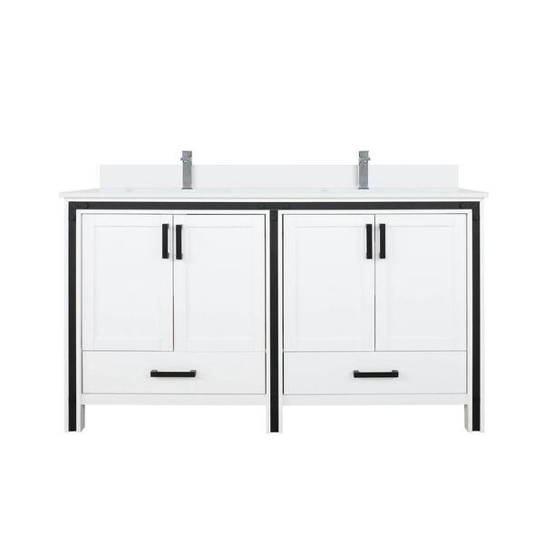 Ziva 60 in W x 22 in D White Double Bath Vanity, White Quartz Top and Faucet Set