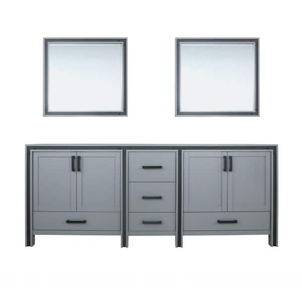 Ziva 84 in. W x 22 in. D Dark Grey Double Bath Vanity without Top and 34 in Mirrors