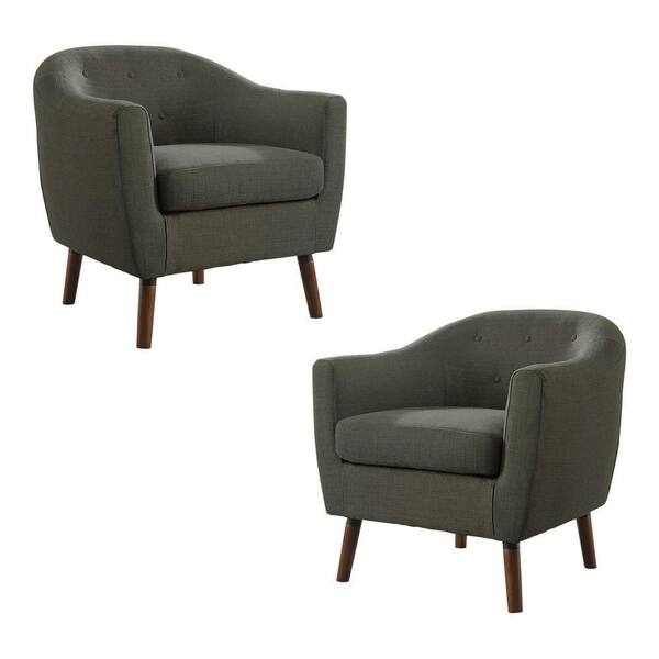 Lhasa Gray Textured Upholstery Barrel Back Accent Chair (Set of 2)