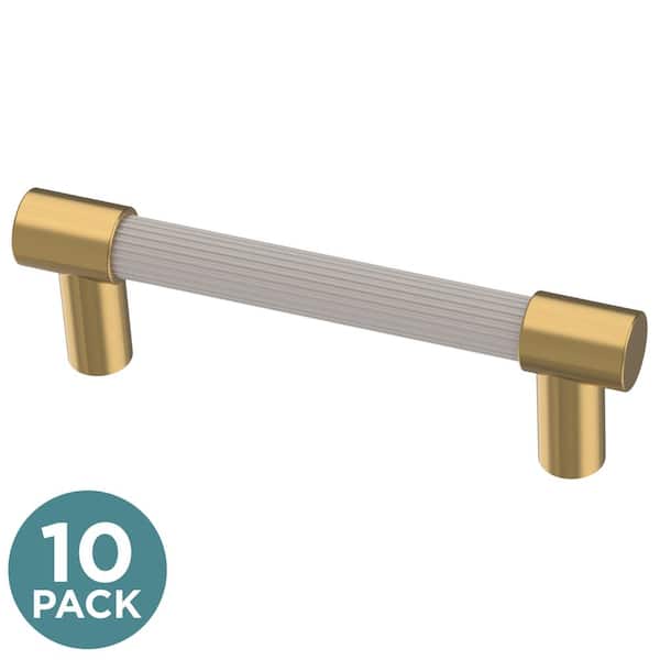 (10-Pack) Fluted 3 in. (76 mm) Modern Brushed Modern Gold and Griege Cabinet Handle Drawer Pulls