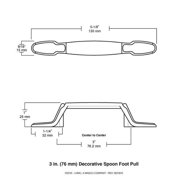 Decorative 3 in. (76mm) Antique Iron Spoon Foot Cabinet Drawer Pull