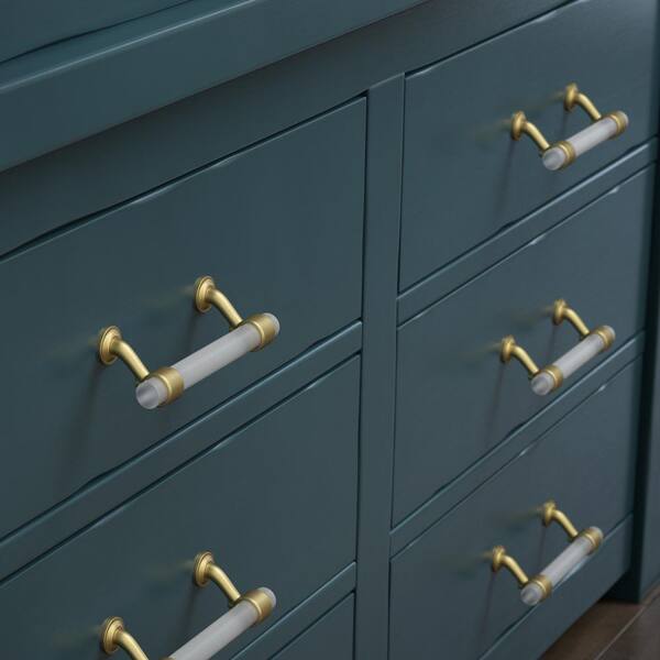 • Modern hardware cabinet drawer pull in brushed brass and glass