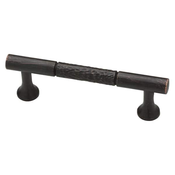 Hammered 3 in. (76mm) Venetian Bronze Rough and Smooth Flared Foot Bar Cabinet Drawer Pull