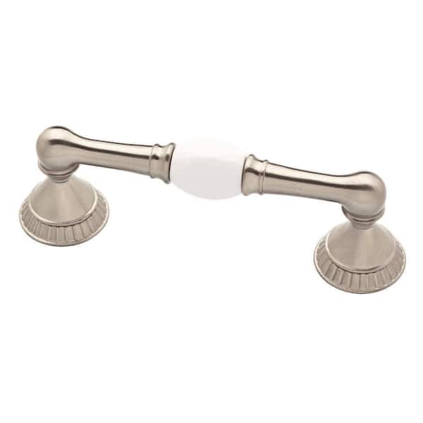 Palermo Dual Mount 3 or 3-3/4 in. (76/96 mm) White and Satin Nickel Cabinet Drawer Pull