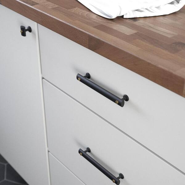 Riveted 5-1/16 in. (128 mm) Matte Black with Champagne Bronze Bar Drawer Pull