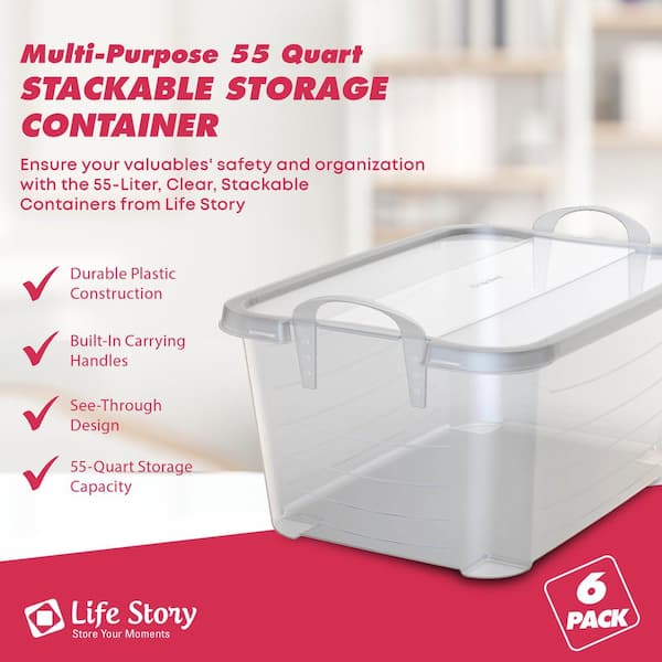 Clear Stackable Closet and Storage Box 55 Qt. Containers, (6-Pack)