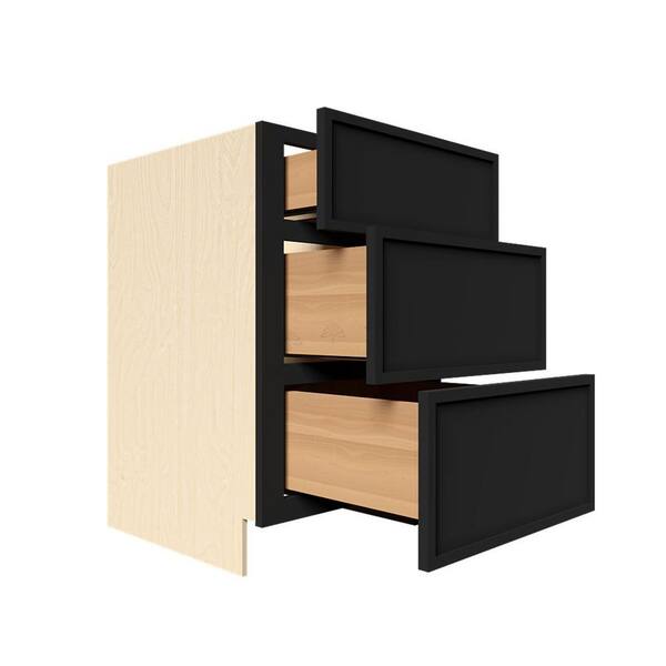 Slim Shaker 15 in. 3-Drawer Base Bath Vanity Cabinet without Top in Black Assembled