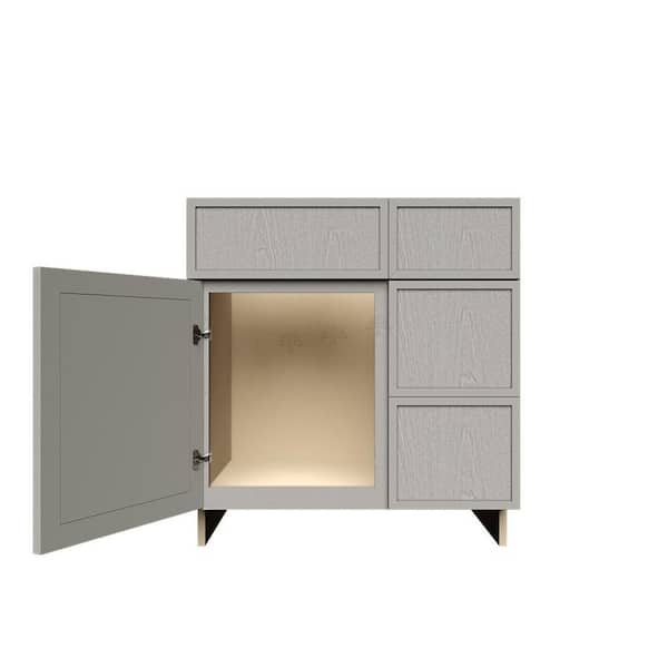 Slim Shaker 30 in. Sink Base Bath Vanity Cabinet without Top with 2 Right Drawers in Gray Assembled