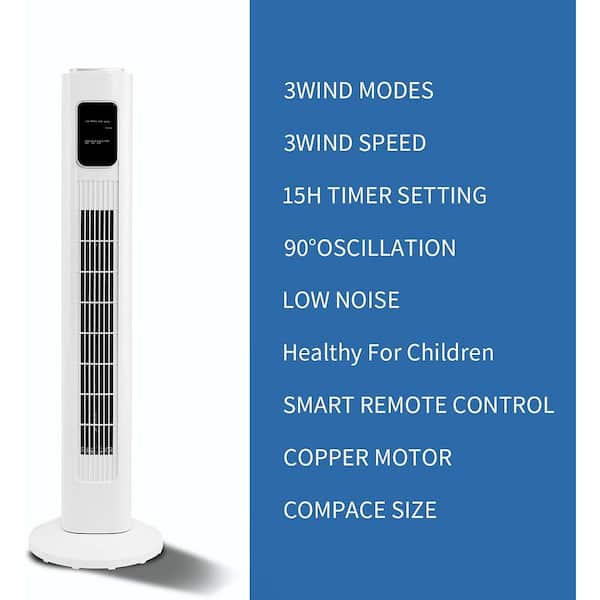 Remote Control Powerful Standing 3 Speeds Wind Modes Bladeless Floor Fans, White