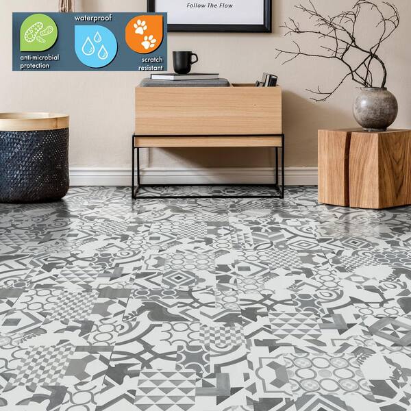 Atascosa Gray Geo Tile 18 in. W x 18 in. L Luxury Vinyl Plank Flooring (22.5 sq. ft.)