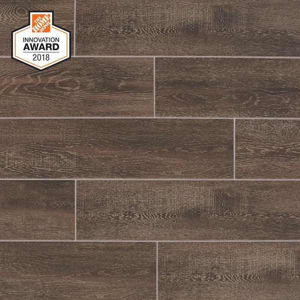Coffee Wood 6 in. x 24 in. Glazed Porcelain Floor and Wall Tile (0.97 sq. ft. / piece)