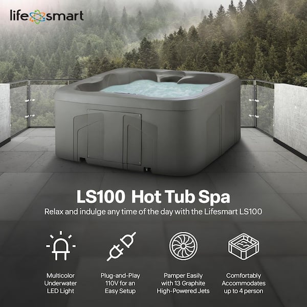LS100 Taupe 4-Person Plug and Play 13-Jets Square Hot Tub Spa with Black Cover, 110-Volt
