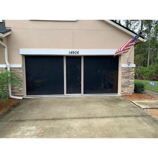 18 ft. x 8 ft. Roll-Up Garage Door Screen with Sandstone Frame and Black PVC-Coated Polyester Mesh