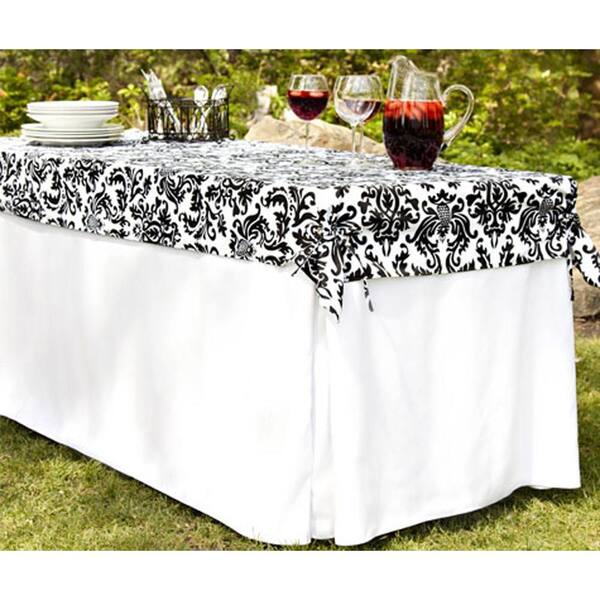 8 ft. Utility Table in White Table Cloth with Black and White Damask Topper