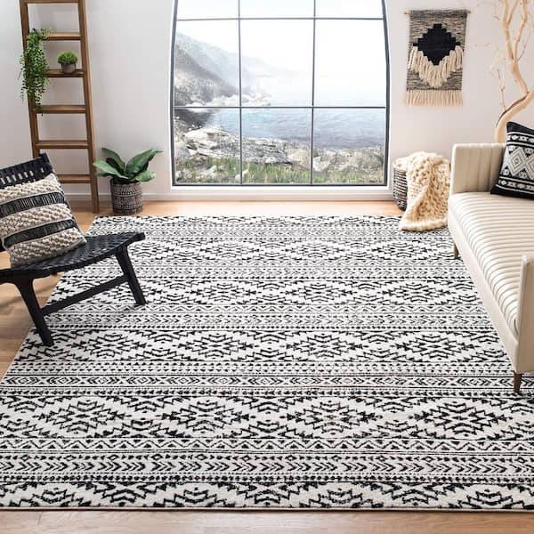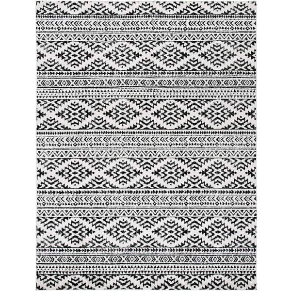 Light Black Polypropylene 8 ft. x 10 ft. Geometric Indoor Area Rug