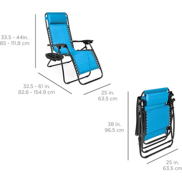 Light Blue Adjustable Steel Mesh Zero Gravity Lounge Chair Recliners with Pillows and Cup Holder Trays (Set Of 2)