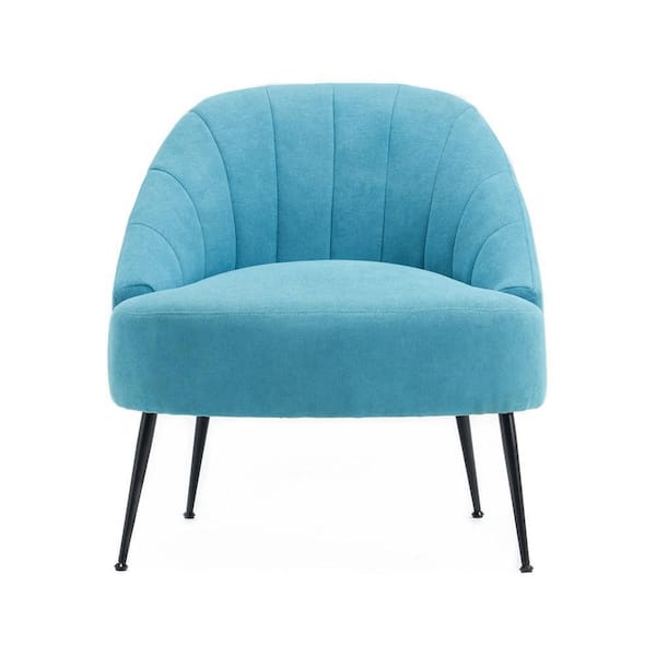 Light Blue Polyester Fabric Thick Foam Padded Accent Chair Living Room Bedroom Side Chair with Backrest (Set of 1)