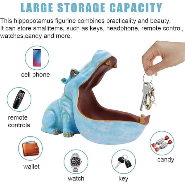 Light Blue Resin Hippopotamus Figurine Decorative Bowls Home Sculpture