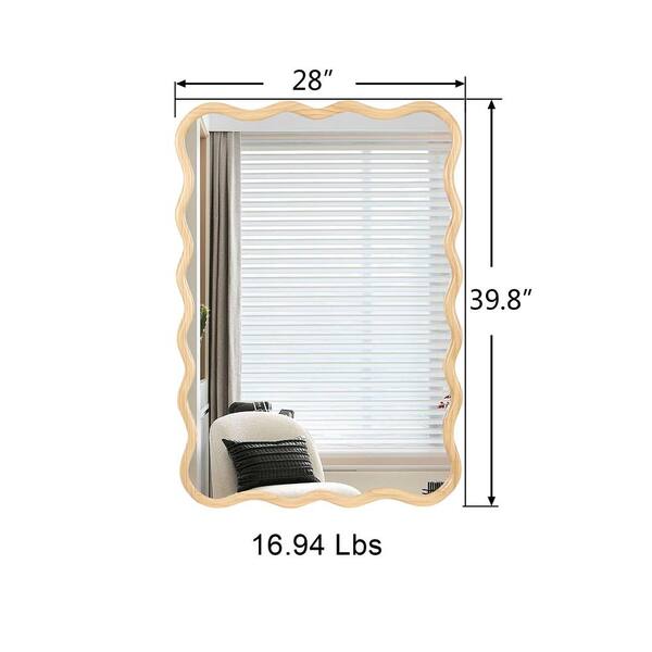 Light Brown 28 in. W x 40 in. H Rectangle Soild Wood Framed Wall Decor Mirror for Bathroom, Living Room