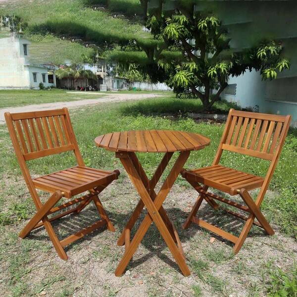 Light Brown 3-Piece Acacia Wood Outdoor Bistro Set Patio Dining Set Foldable Table and Chair Sets