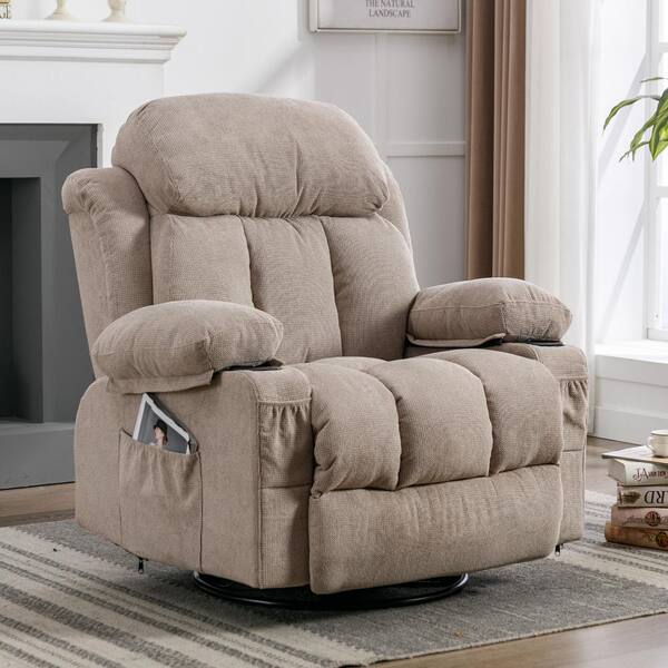Light Brown Velvet Manual Recliner Chair, Massage Heated Single Sofa Accent Chair with 360° Swivel Base and 30° Rocking