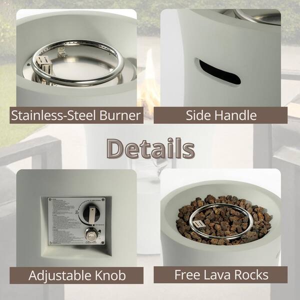 Light Gray Round Outdoor Propane Fire Pit Table with Waterproof Cover, Free Lava Rocks