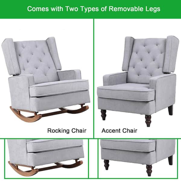 Light Gray Upholstered Mid Century Modern Rocker Oversized Wingback Rocking Armchair with Two Legs Option