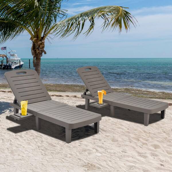 Light Grey 2-Piece Plastic Outdoor Chaise Lounge Lounge Chairs Lying In Bed for Patio Pool Garden Beach