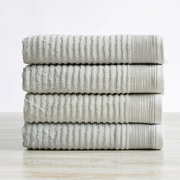 Light Grey Cotton Ribbed Texture 4 Piece Hand Towel Set