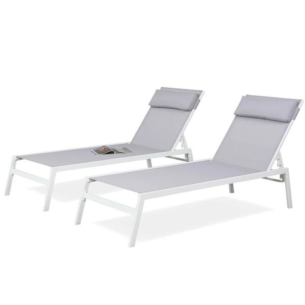 Light Grey Metal Outdoor Chaise Lounge Adjustable Patio Reclining Lounger Chair with Removable Headrest