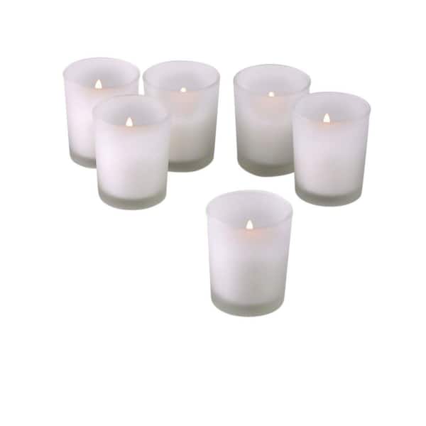 White Frosted Glass Round Votive Candle Holders with White Votive Candles (Set of 12)