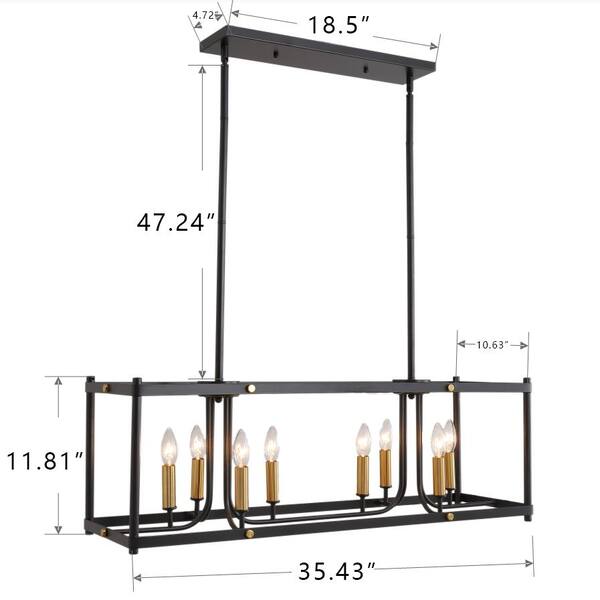Light Pro 8-Light Metal Black Modern Rectangular Chandelier for Kitchen, Linear Lantern Island Light