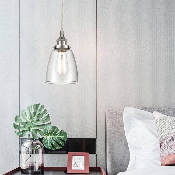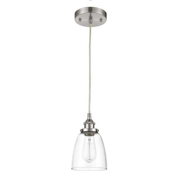 Camberly 1-Light Satin Nickel Pendant with Clear Glass Shade