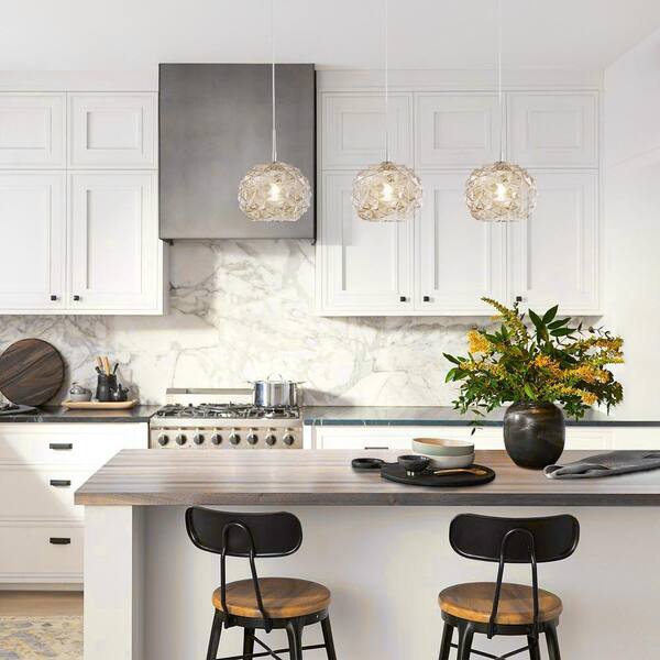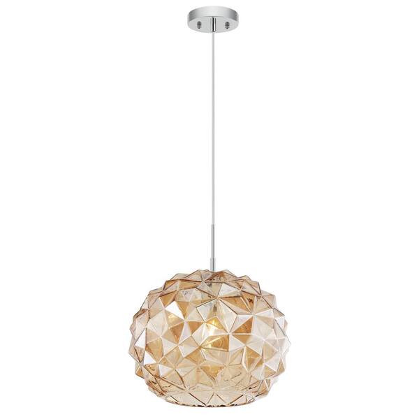Gia 14 in. Chrome/Champagne Pendant Light with Glass Shade