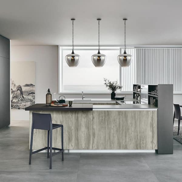 Malibu 3-Light Black Pendant with Smokey Glass Shade