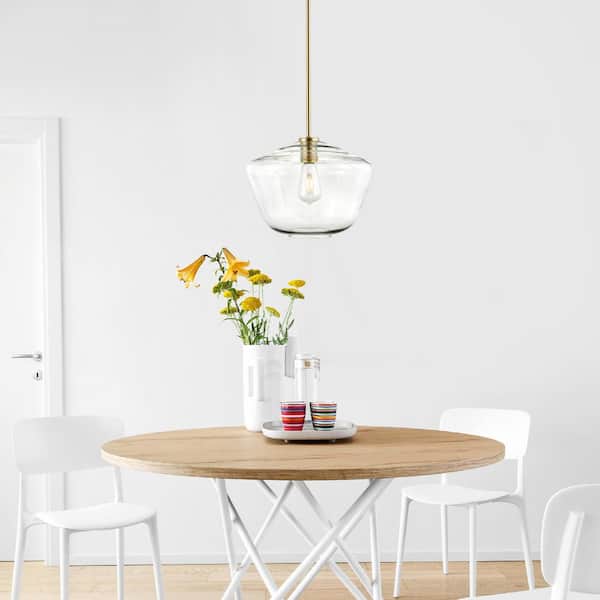 Vera 1-Light Brushed Brass Pendant with Clear Glass Shade