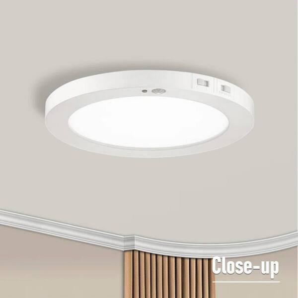1-Light White Motion Sensing Integrated LED Outdoor Flush Mount Light with Photocell