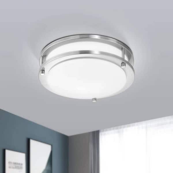 10 in. 17-Watt Brushed Nickel Modern Dual Ring Dimmable Integrated LED Flush Mount with White Acrylic Shade