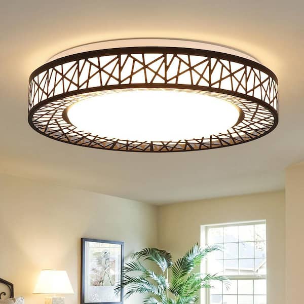 12 in. 20-Watt Modern Matte Black Integrated LED Flush Mount with Acrylic Shade