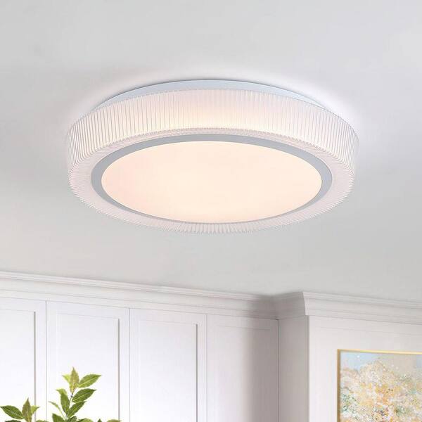 15 in. 30-Watt Decorative Textured Round white Integrated LED Flush Mount with White Acrylic Shade