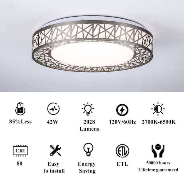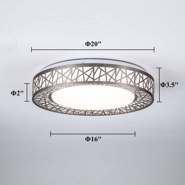 20 in. 42-Watt Modern Brass Nickel Integrated LED Flush Mount with Acrylic Shade
