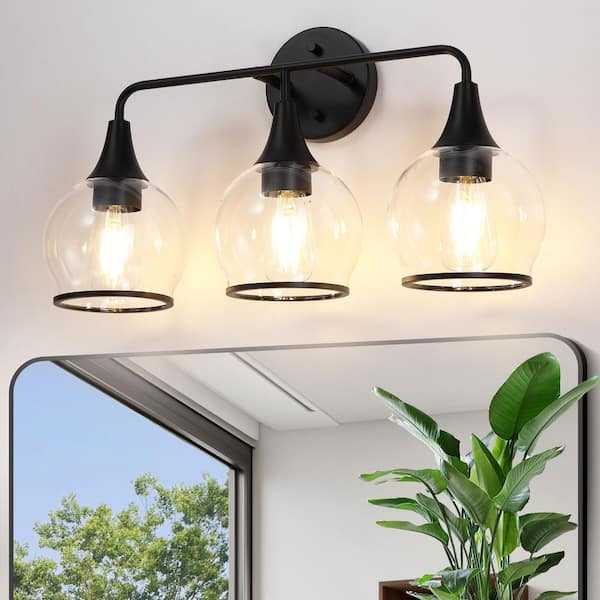 21.5 in. 3-Light Matte Black Vanity Light with Clear Glass Shade