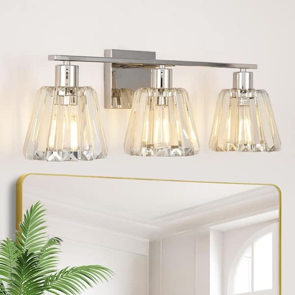 23 in. 3 Light Brushed Nickel Vanity Light with Clear Glass Shade