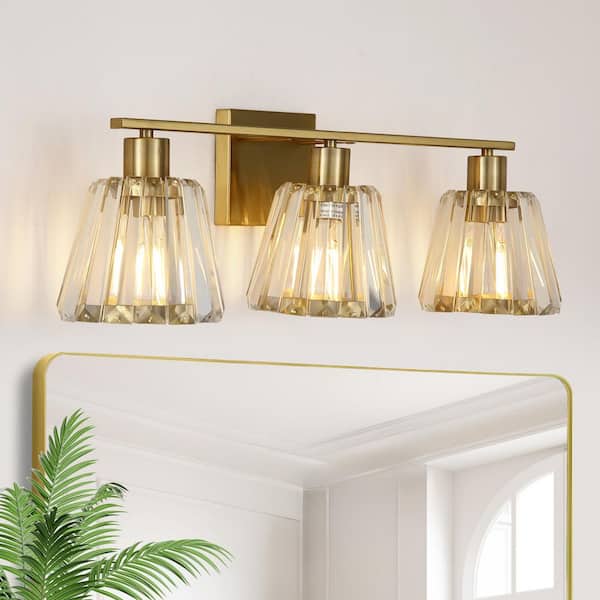 23 in. 3 Light Gold Vanity Light with Clear Glass Shade