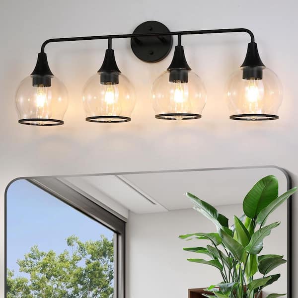 29 in. 4-Light Matte Black Vanity Light with Clear Glass Shade