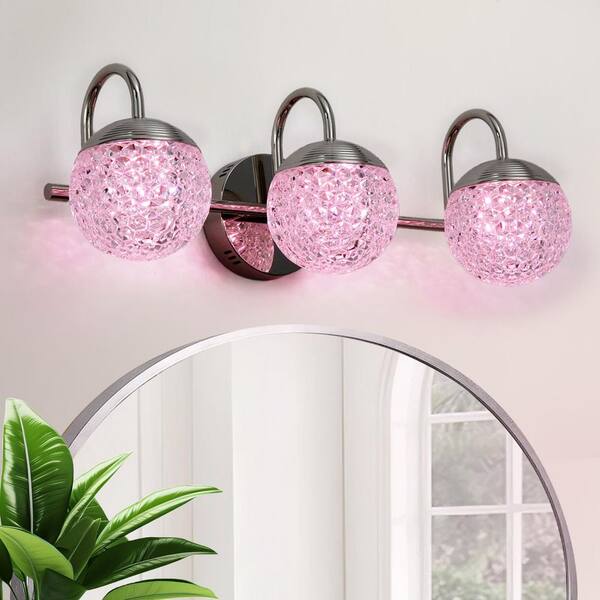 Sphere shaped 22 in. 3 Lights Brushed Nickel LED Vanity light Bar with Remote control RGB lights
