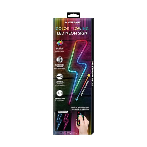 "Lightning Bolt" 1-Piece Unframed with LED Light Neon Sign, Nature Wall Art 13 in. x 4.13 in.